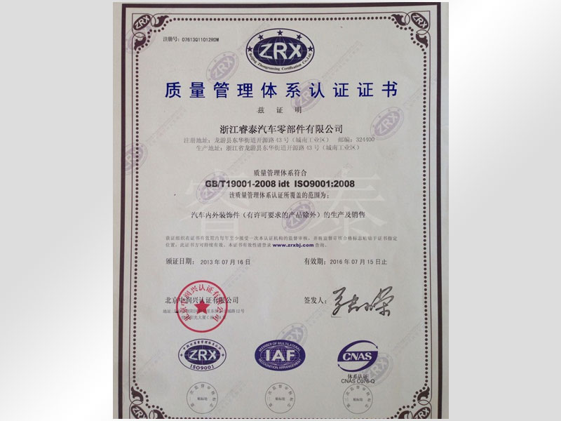 質(zhì)量管理體系認(rèn)證證書(shū)